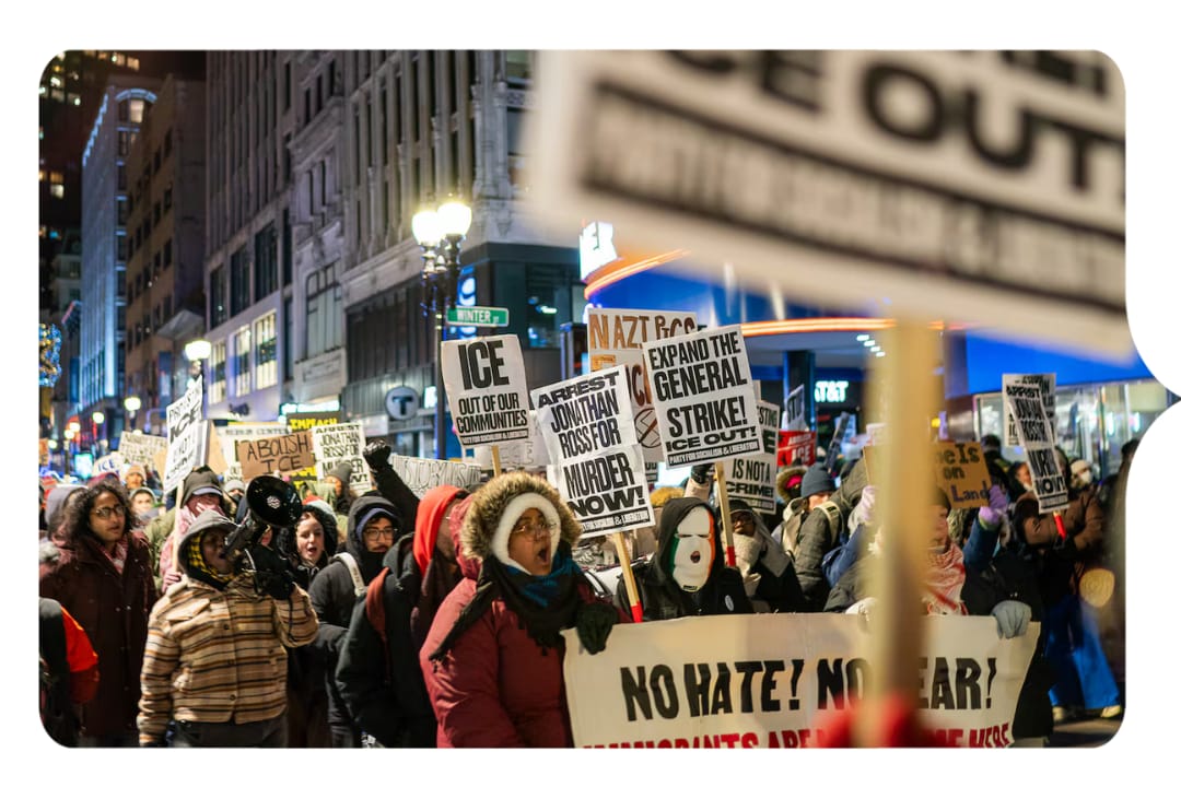 π§ ICE is on thin ice with local leaders. Following two tragic deaths at the hands of federal agents this month and ICE activity ramping up in New England, local activists and politicians alike are speaking out. See: Boston joining over 40 local governments across the country in supporting a lawsuit to end Minnesotaβs federal immigration crackdown, Mayor Wu calling the ICE campaigns βunconstitutional and illegal,β hundreds marching in massive anti-ICE protests in Boston, and both Mass. senators saying they wonβt support a bill funding the Department of Homeland Security.