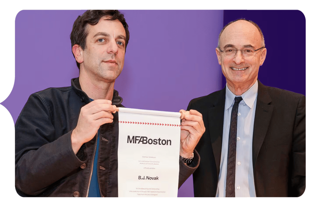 The scene? The MFA, mid-1990βs. The perps? A high-school aged BJ Novak, Newton native and comedian of βThe Officeβ fame, and his friend Amir Dehestani. The crime? Swapping out the self guided tour tapes on one of the museumβs exhibits for their own, significantly sillier, and completely inaccurate versions, which included trash talk about the art, as well as instructions for the viewer to do the hokey-pokey.Β